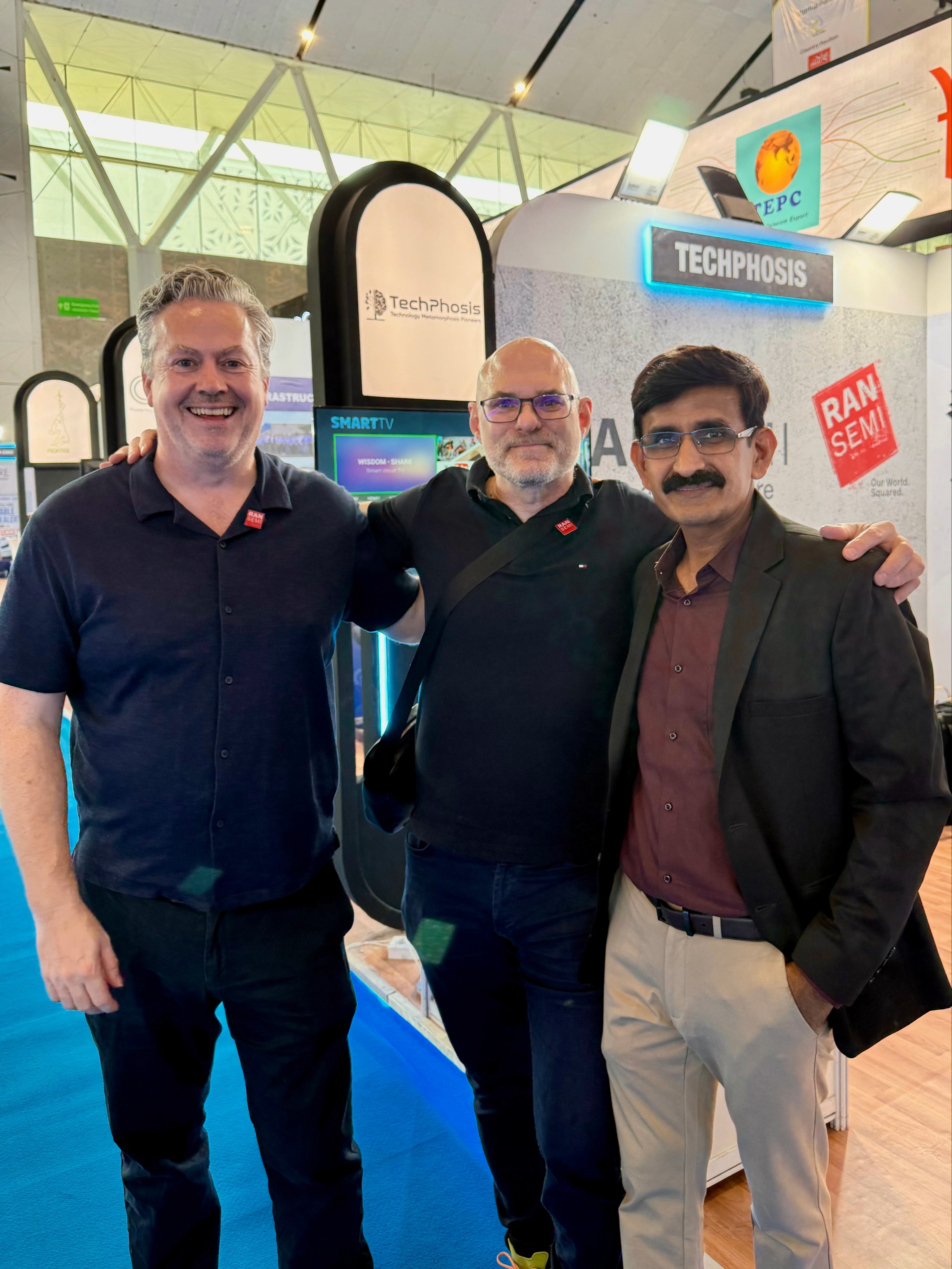 RANsemi and TechPhosis Execs at India Mobile Congress 2025 (From L-R: Neill Young, VP Business development – RANsemi; Oliver Davies, VP Marketing – RANsemi; Mangal Singh, CO-Founder and COO – TechPhosis